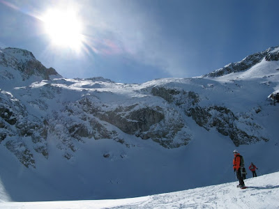 Trevor looks back at the “Banana couloir” in the chancel bowl.